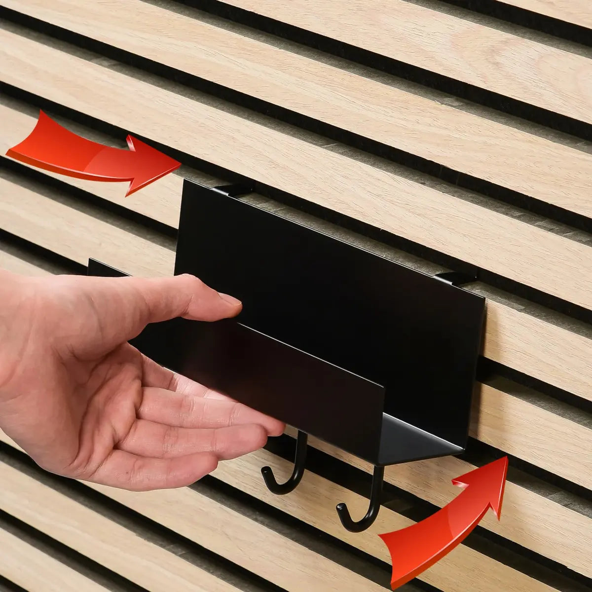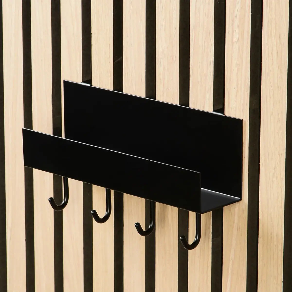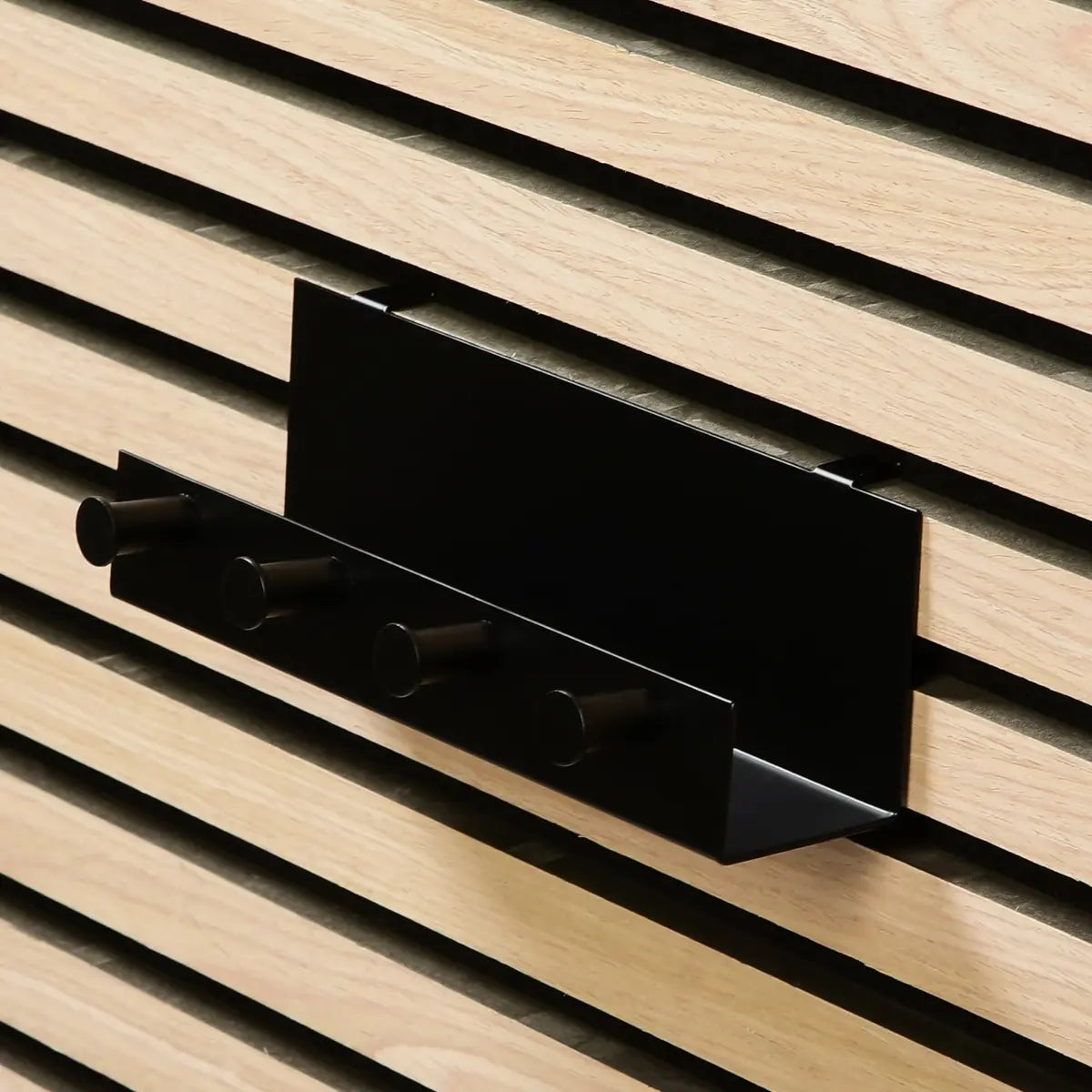 Integrate functionality and style into your entryway, office, or other areas of your home with these practical storage shelves, equipped with hooks and pegs. They are ideal for hanging and organizing your keys, bags, or other small items while optimizing the acoustics of the room. With dimensions of 50 x 215 x 70 mm and a weight capacity of 5 kg, it’s designed for easy installation on the wood slat panels, allowing you to effortlessly add a smart storage solution to your space.